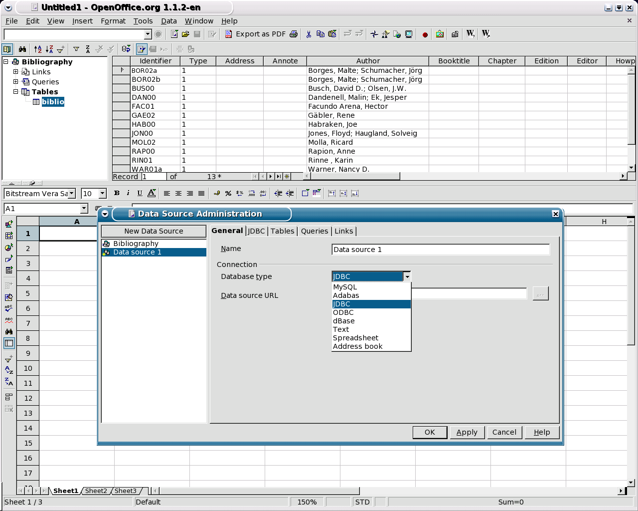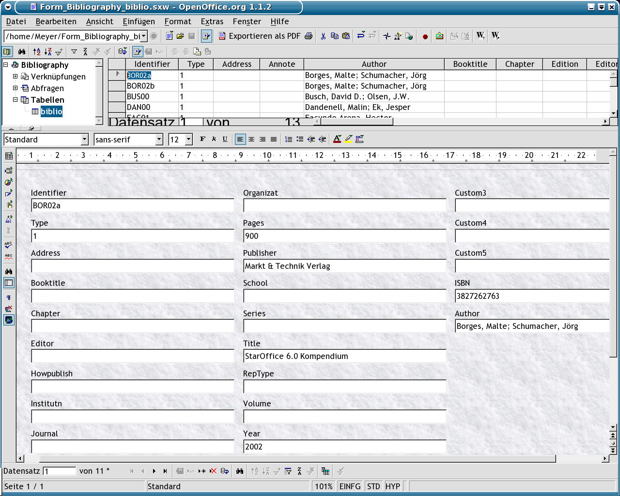 Screenshots: OpenOffice.org 1.1 - Database