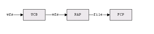 In that scenario, a trick is used to completely hide the vnd.sun.star.wfs URL scheme from the FCP (i.e., the server side FCP internally works with file URLs, just like any other FCP): There is a special Remote Access Content Provider (RAP) between the UCB and the FCP. That RAP, among other things, can route requests to another UCP and rewrite URLs "on the fly." This feature is used here, so that the client of the UCB works with vnd.sun.star.wfs URLs and the FCP remains unmodified and works with file URLs, with a RAP in between that maps between those two URL schemes: